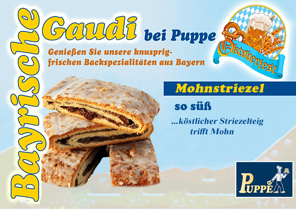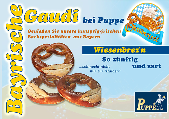 Bayerische Gaudi bei Puppe. Genießen Sie unsere knusprig-frischen Backspezialitäten aus Bayern.